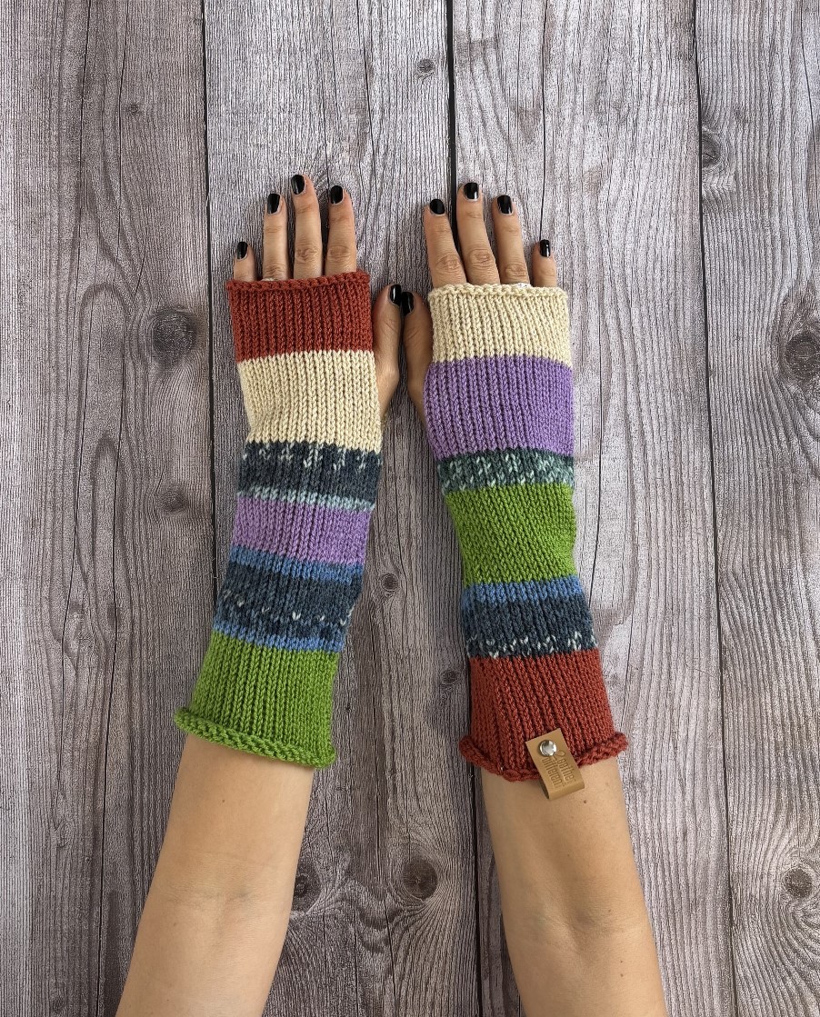 Ove rukavice bez prstiju za žene su posebne jer svaka od njih ima svoj jedinstveni dizajn i karakteristike. Nastaju u trenutku, kad se nasumično odaberu različite boje vunice. Zato nije moguće ponoviti ih. Kada se prodaju, ne mogu da se poruče druge, slične, ali zato uvek ima novih unikata. Trudimo se da nove unikate pravimo na nedeljnom nivou. Svakog četvrtka na sajtu možete pogledati nove modele unikata.